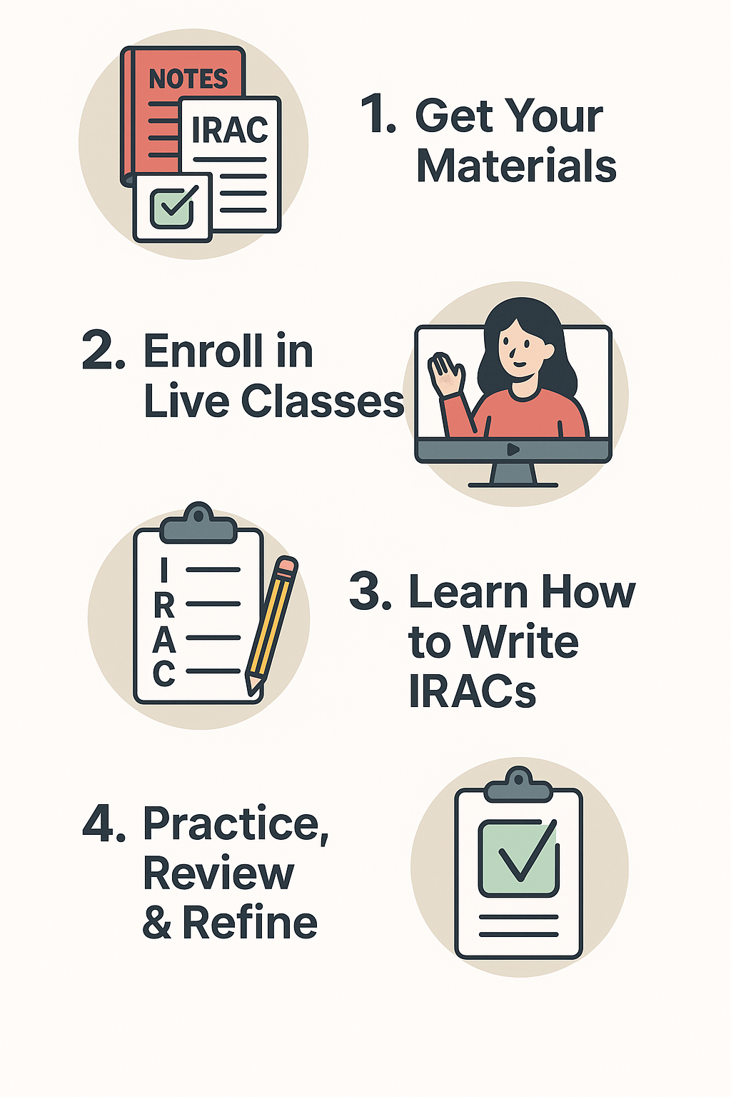 👩🏫 Live, instructor-led sessions on Google Meet that goes beyond just reading the law, we walk you through how to analyze, write, and score.